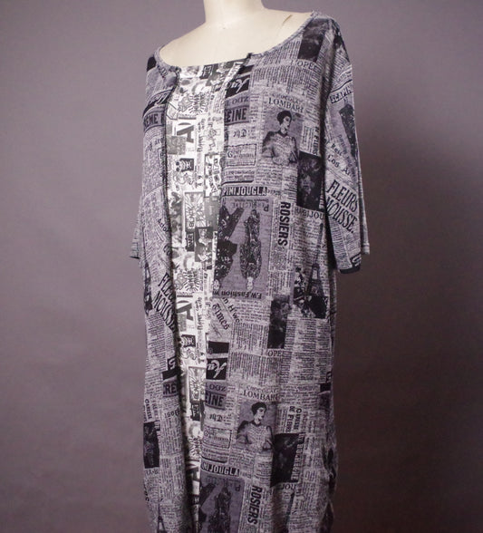 XXL summer long dress, XXL newspaper print dress, XXL Upcycled Clothing