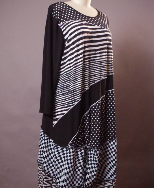 XL Polka Dot Dress, Striped Long Dress, XL Upcycled Clothing