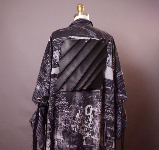 OOAK Grommet Long Jacket, Unique Goth Unisex Jacket, OOAK Up-cycled Newspaper Jacket