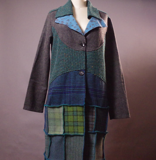 OOAK Wool Long Coat, Unique Patchwork Coat, Women's Unique Coat