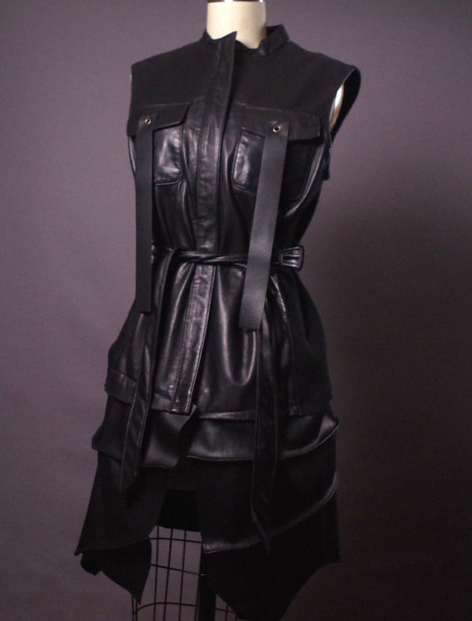OOAK Leather Cocktail Jacket, Unique Leather Vest, Upcycled Rare Vest Jacket