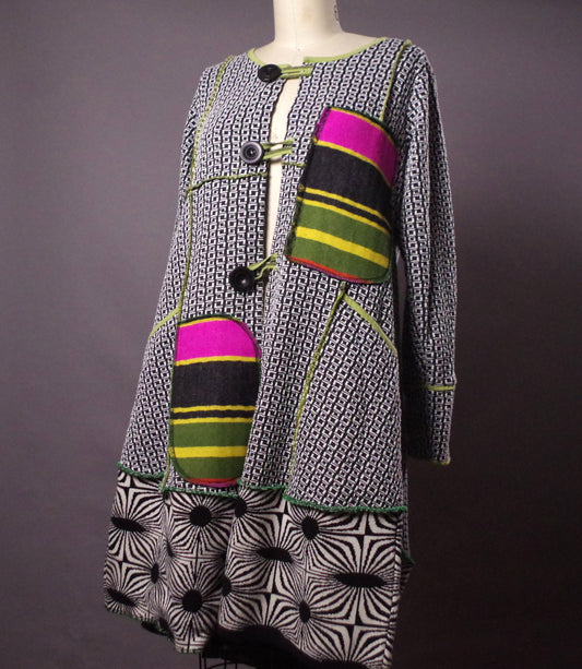 Upcycled Patchwork Jacket, Unique Black and white cardigan jacket, Funky, Upcycled Clothing, One of a Kind