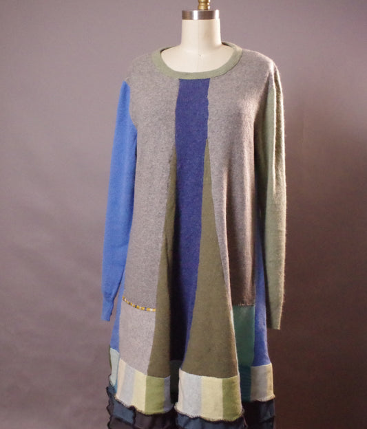 Art to wear dress, Unique cashmere dress, Up-cycled Clothing, One of a Kind