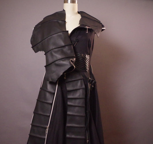 OOAK Zippered Leather Dress, Maxi Unique Goth Dress, Avantgarde Black Dress, Goth Wedding Dress