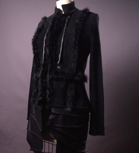 Goth Black Rabbit Fur Jacket, Women's leather jacket, Goth Jacket, Grunge, Edgy, Alternative Clothes