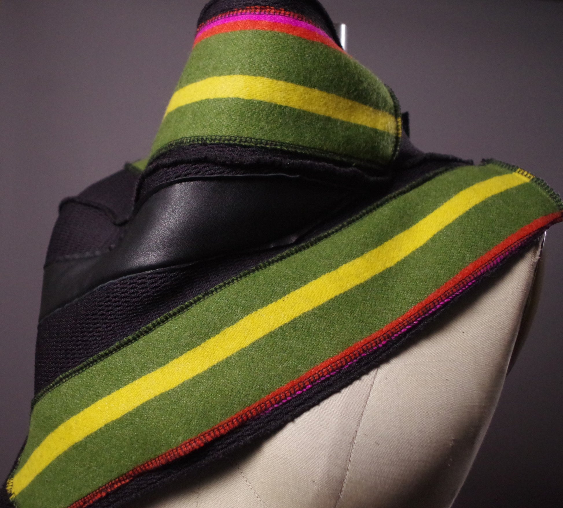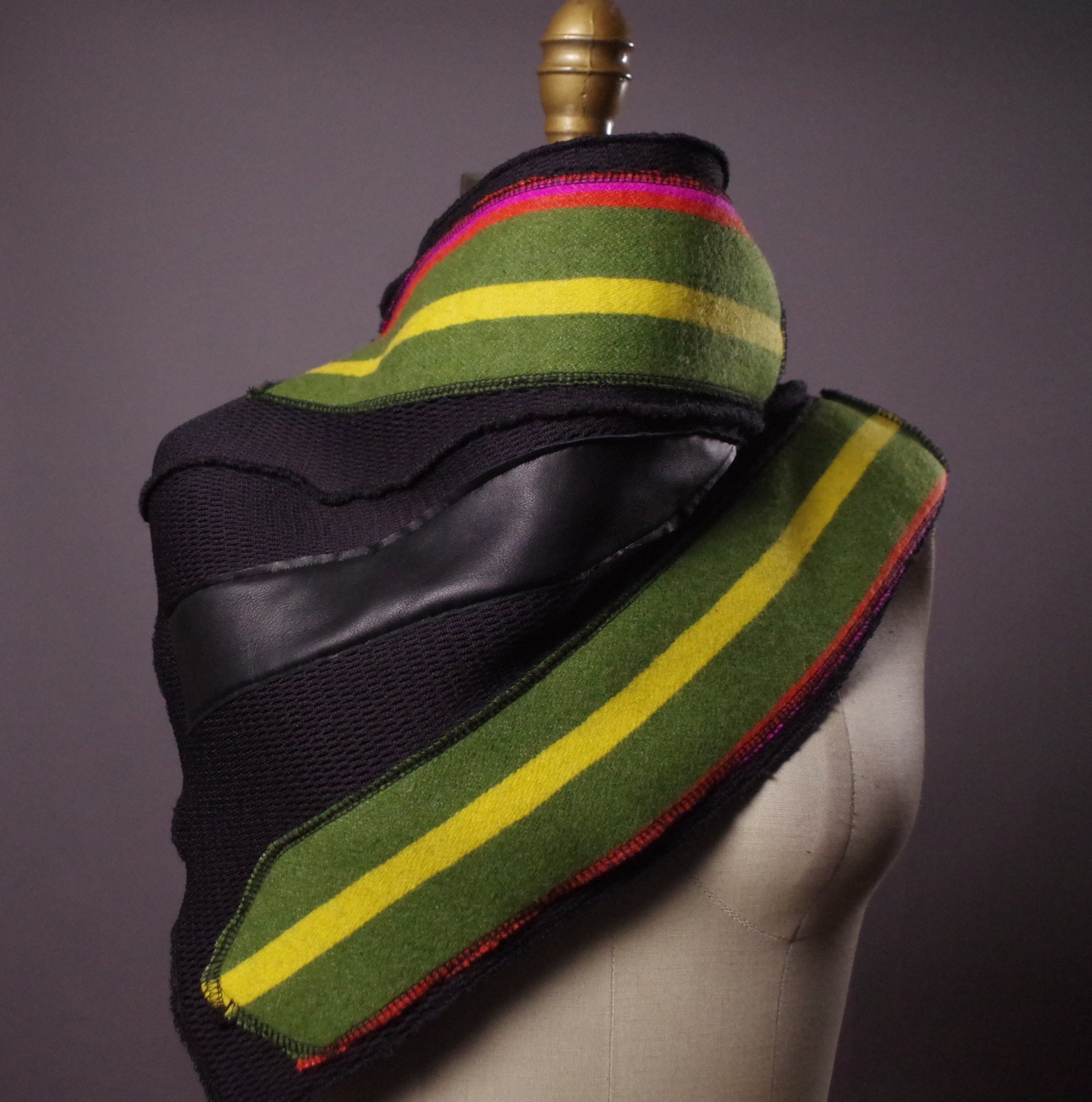 This neck warmer scarf is handmade from high quality thick %100 alpaca, stretchy neoprene and Italian genuine leather. The colorful alpaca fabric is high quality thick designer fabric. The straps are made from thick genuine leather. Totally one of a kind! It will keep you warm and it's so stylish.