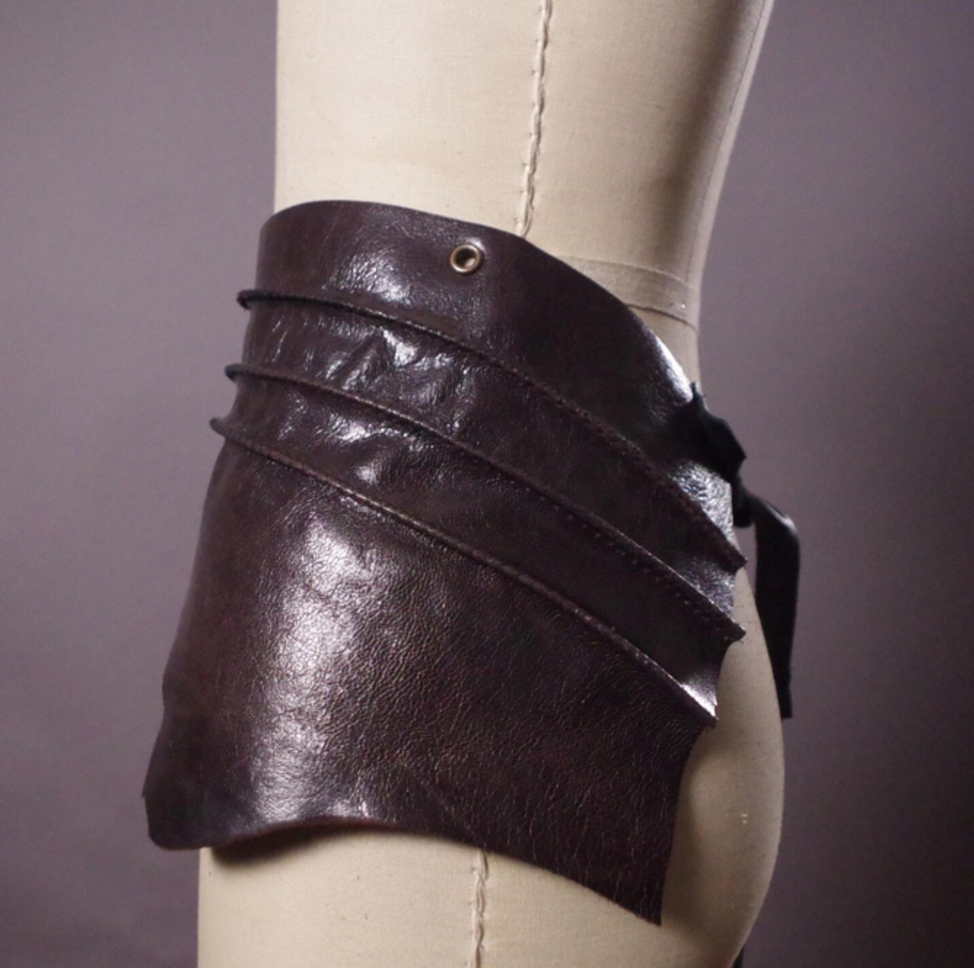 This belt is handmade from thick dark brown up-cycled genuine leather. This up-cycled leather scrap is found in a leather factory. Zero waste! The straps are made from cotton with grommets.